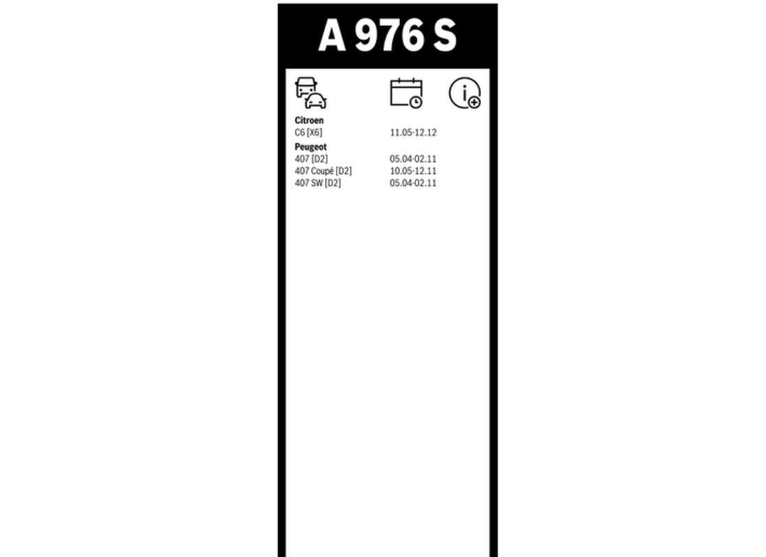| en | AEROTWIN wiper blade set Citroen C6, Peugeot 407 |