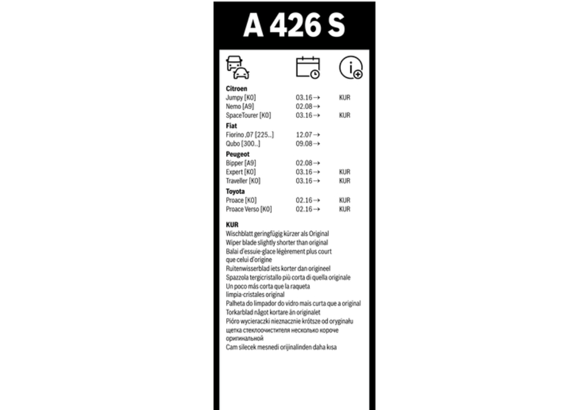 | fi | AEROTWIN pyyhkijänsulka sarja Citroen Jumpy-Spacetourer 2016-/ Peugeot Expert-Traveller 2016- |