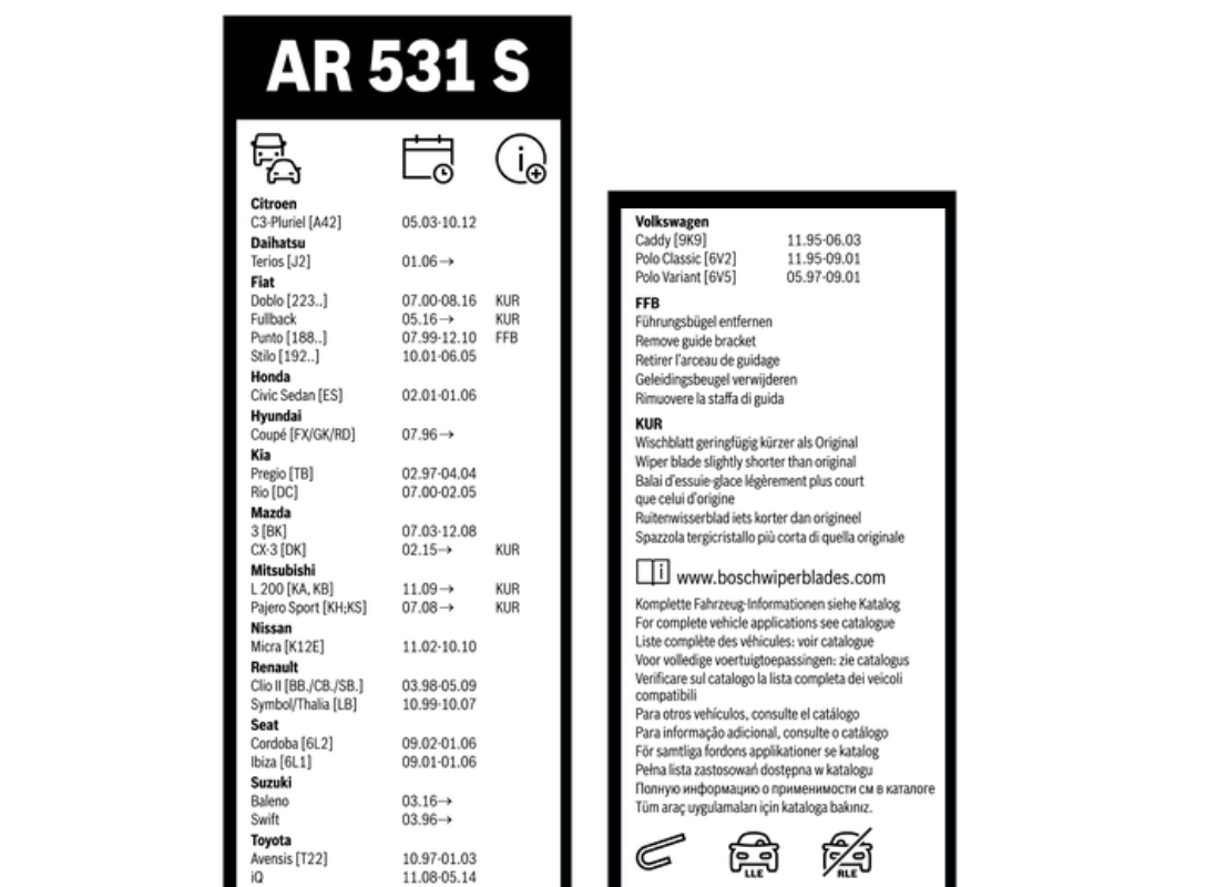 | en | AEROTWIN wiper blade set Renault Clio II 530+475mm |