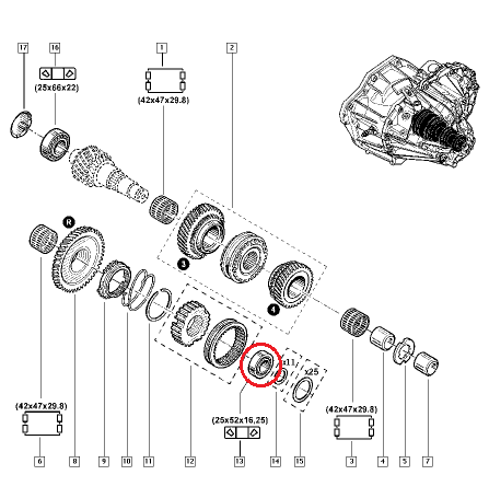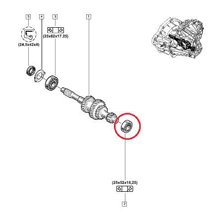 | ru | Подшипник КПП 25x52x16,25 Renault PF6 |