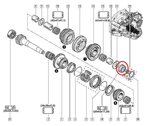 **Käigukasti laager 25x61,7x17,25 Renault PK5/PK6