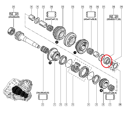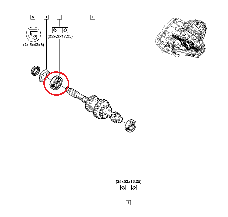 | en | Gearbox bearing 25x62x17,25 Renault PF6 |