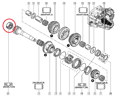 | ru | Подшипник КПП 25x65,7x22 Renault PK5/PK6 |
