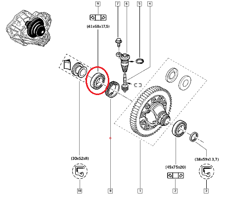 | en | Gearbox bearing (differential right) 41x68x17,5 Renault PK5/PK6/PF6 |